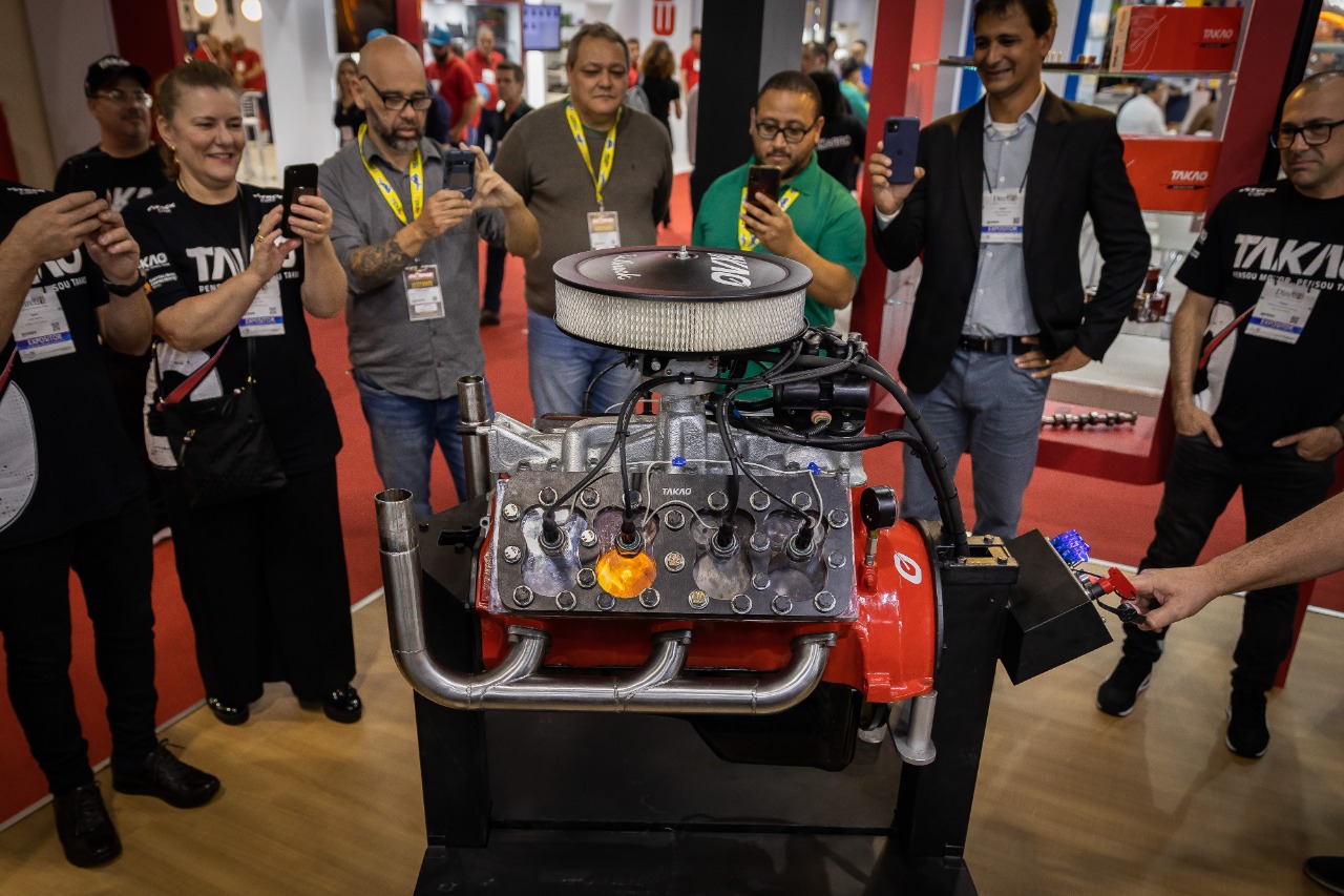 A Takao, fabricante de componentes automotivos de alta qualidade, est mostrando na 10 edio da Autopar como ocorre a queima do combustvel dentro de um cilindro de um motor V8. Para levar o visitante a experincia nica, a Takao idealizou uma espcie de chapa de carbono/acrlico no lugar do cabeote. Com a transparncia, possvel ver o movimento dos cilindros e das vlvulas, assim como a queima da gasolina.